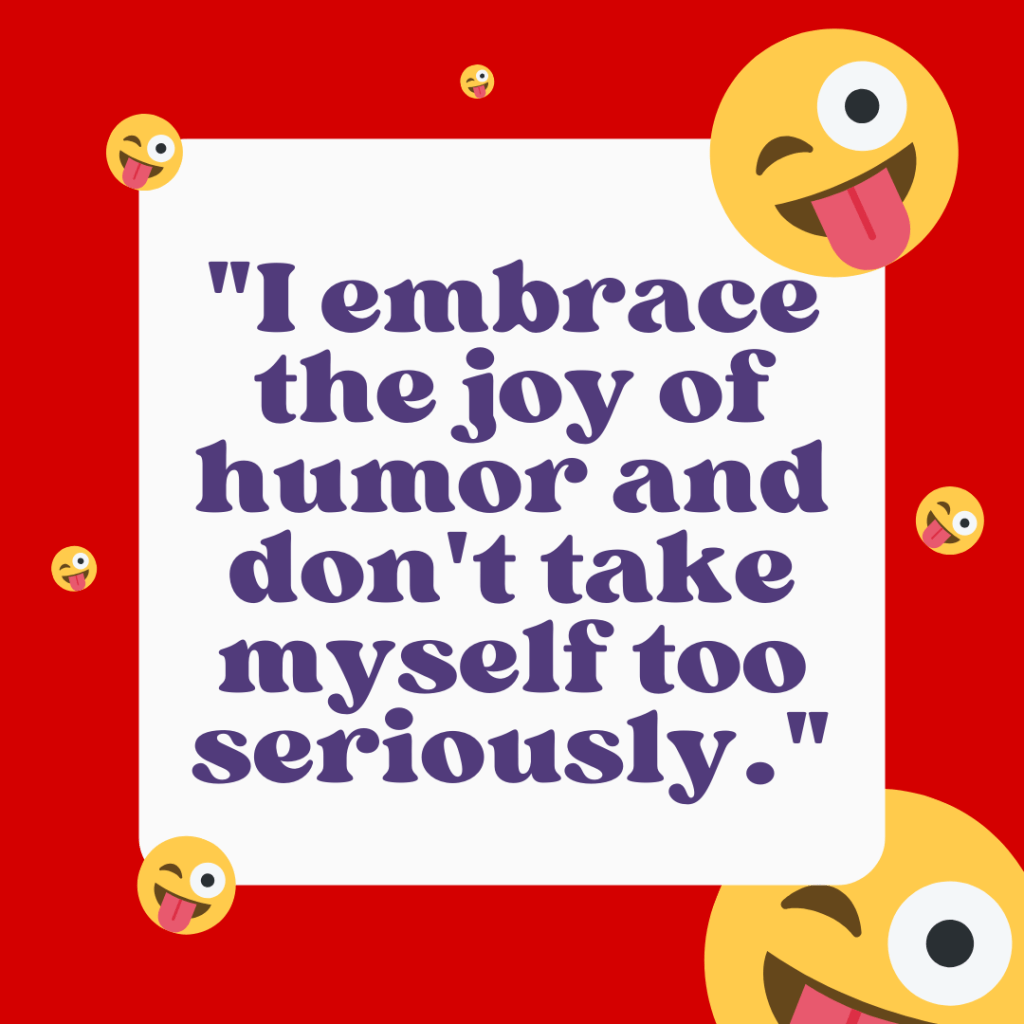 5. “I embrace the joy of humor and don’t take myself too seriously.”