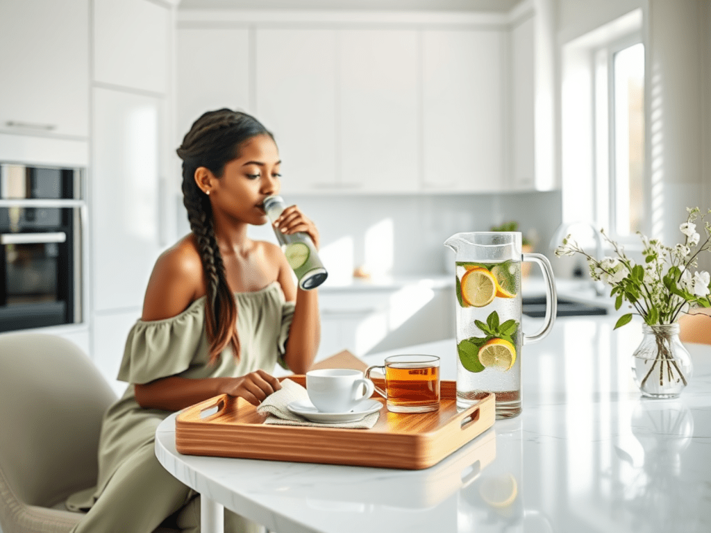 Tip: Keep a water bottle with you throughout the day to remind yourself to drink. If plain water feels boring, try adding a few slices of fruit or cucumber for flavor.