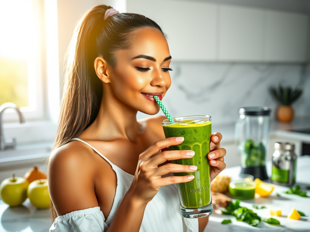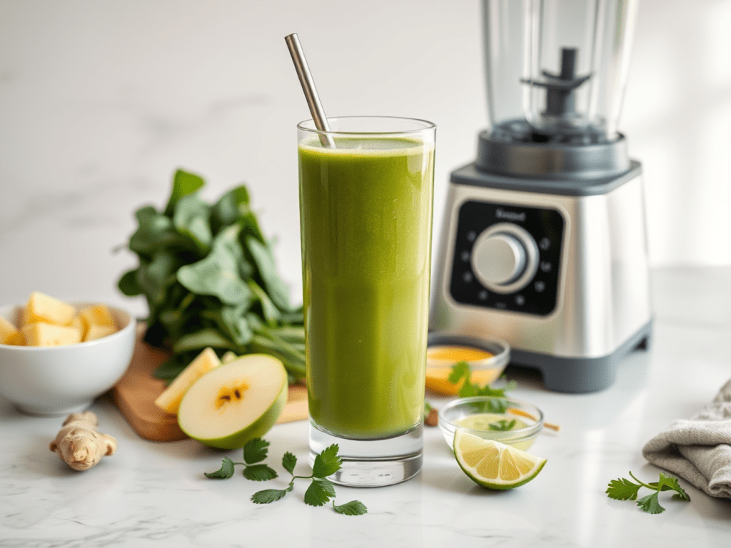 Start your day with this nutrient-packed green smoothie to fuel your body with vitamins and antioxidants. Loaded with fiber, it promotes digestion and detoxifies your system, keeping you energized and satisfied.