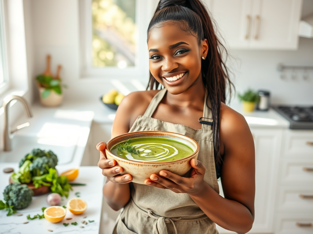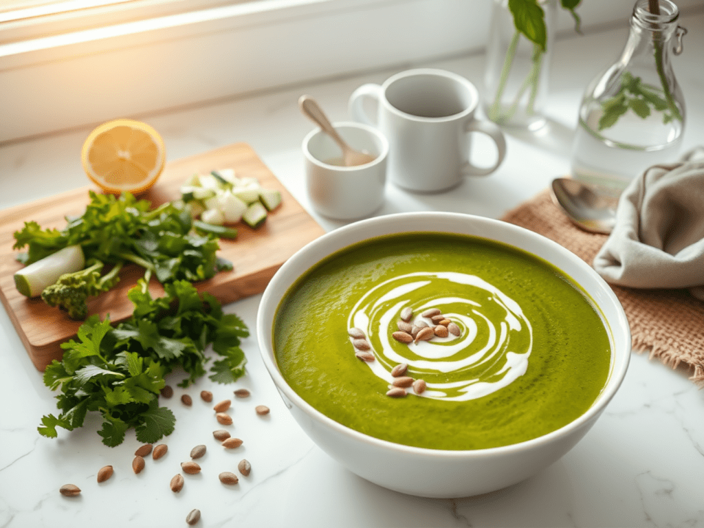 This soup is packed with detoxifying ingredients like kale, broccoli, and cilantro. A perfect light meal to cleanse and nourish your body.