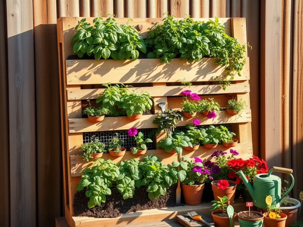 - Materials Needed: Wooden pallet, nails, mesh or chicken wire, soil, and plants of your choice.