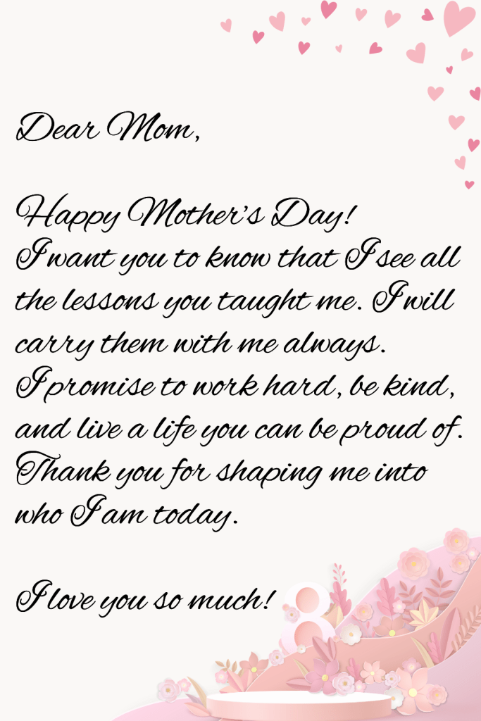 Show your mom that her hard work matters. Promise to carry her lessons with you always.
