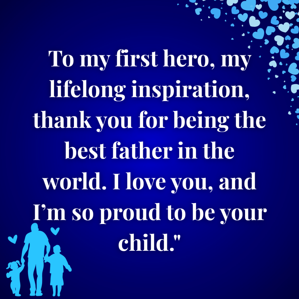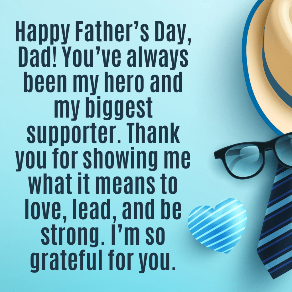 1. “Happy Father’s Day, Dad! You’ve always been my hero and my biggest supporter. Thank you for showing me what it means to love, lead, and be strong. I’m so grateful for you.”