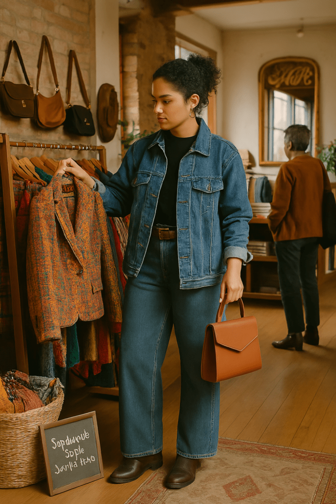 If you’re only shopping in high street stores or online fast fashion rabbit holes, your outfits are probably already walking around on fifteen other people each and every day. Dive into thrift shops, vintage markets, or online resale sites. You’d be surprised what treasures pop up once you’re not looking for the exact same blazer that was in this month’s fashion spread. Bonus: it’s better for the planet and your bank account.