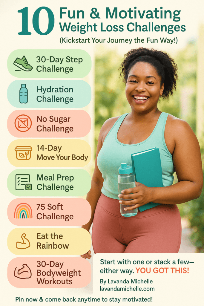 Weight loss isn’t just about the scale—it’s about creating habits that last. These challenges add structure, fun, and accountability to your journey. Whether you’re doing one or stacking a few together, the key is consistency and mindset.