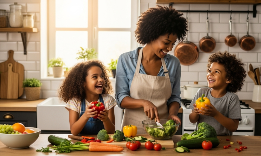 Kids are more likely to try new foods when they help prepare them. Simple tasks like washing veggies, stirring, or assembling salads can make meals fun and interactive.
