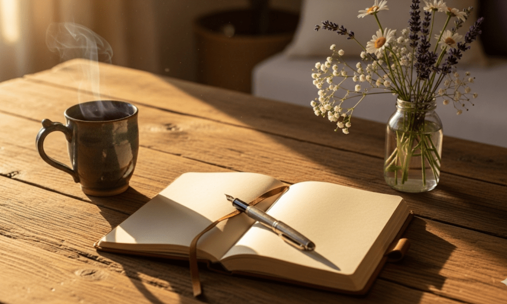 Taking a few minutes to journal or jot down your goals for the day helps cultivate focus and purpose. It clears mental clutter and gives your day direction.