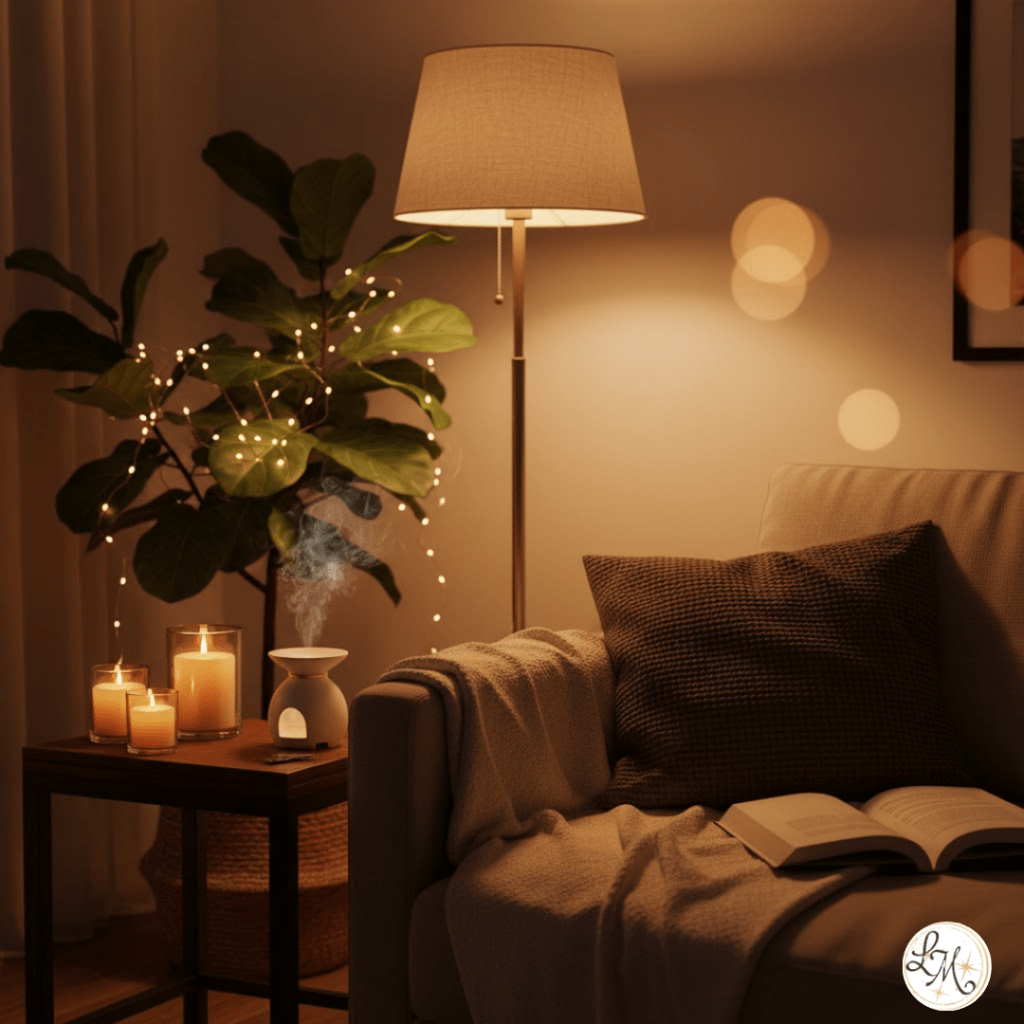 Try swapping out harsh lights for lamps with warm bulbs, twinkling string lights, or even a few candles scattered around your space. The goal? Create that golden-hour glow that makes every evening feel a little more magical.