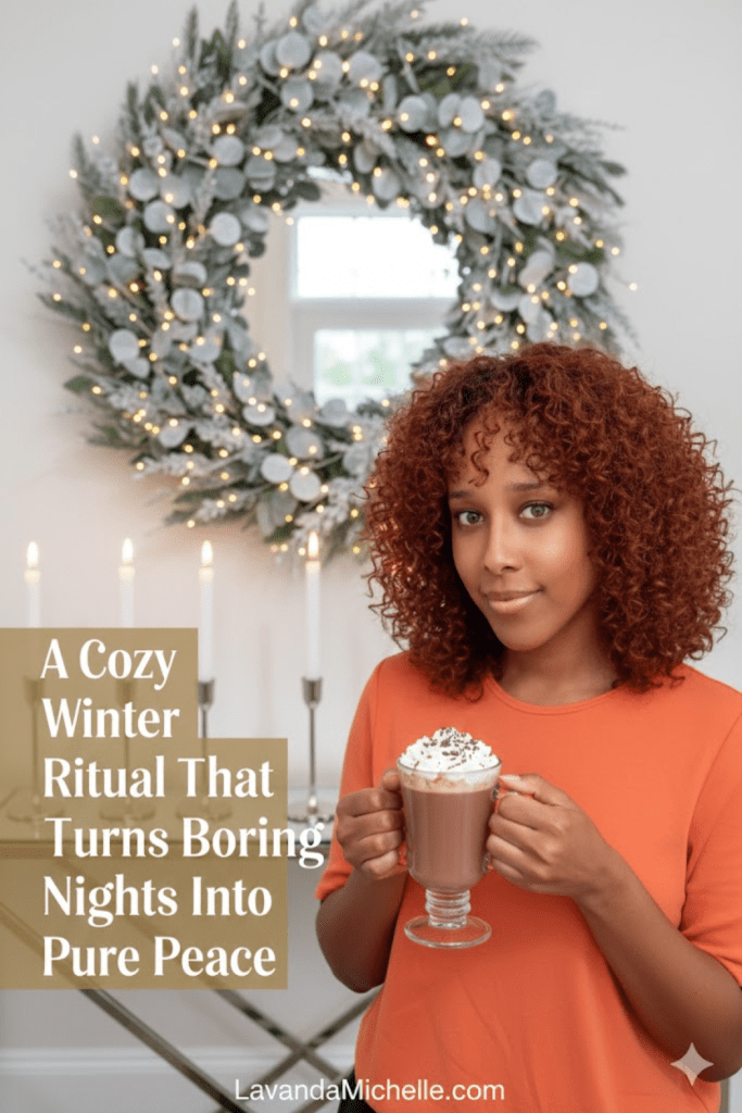Winter nights feeling boring? Try my cozy ritual: make some cocoa, light a candle, and do one peaceful thing with intention. It brings instant calm, warmth, and joy. Try it tonight and tell me your favorite winter ritual! ❄️☕✨ #LavandaMIchelle